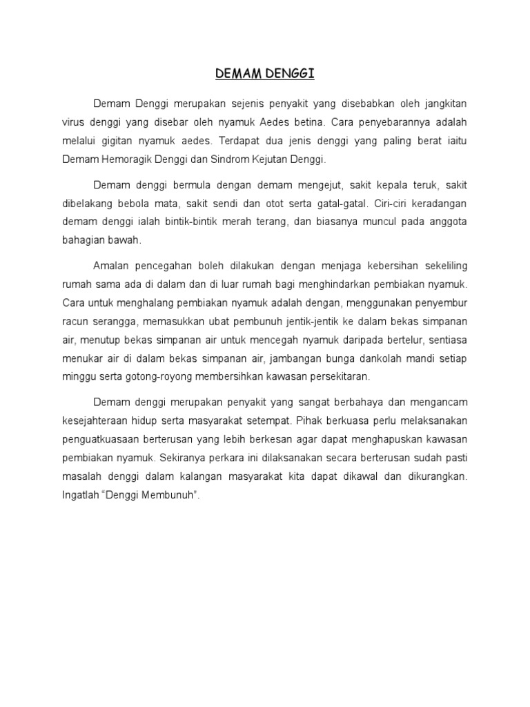 Menjaga kebersihan persekitaran rumah. Penyakit demam denggi yang berpunca. Demam denggi sejenis virus topikal yang disebarkan oleh nyamuk Aedes adalah beban yang ditanggung masyarakat global.